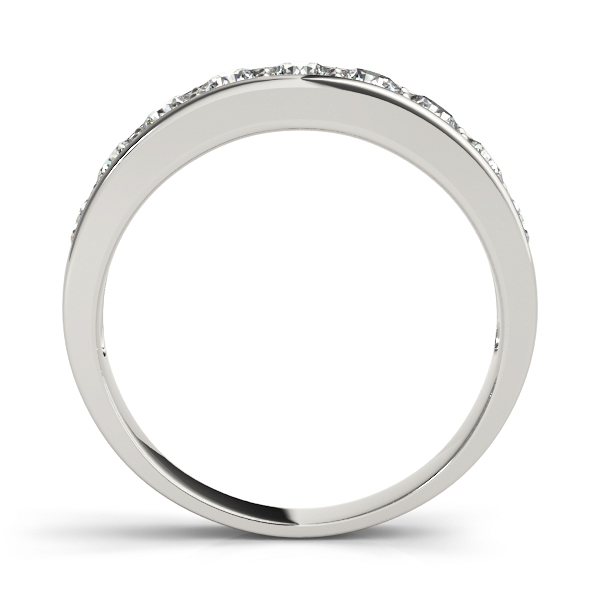 14k White Gold Wedding Band with 9 – .1PT Round Stones, equal to 7/8 carats total weight. This ring has an optional matching Engagement Ring. Can be customized to fit any stone and in any material. Please contact Ronelli Corp for custom orders and modification information, as pricing may vary.