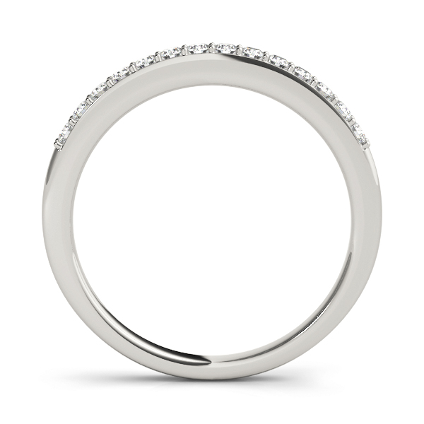 14k White Gold Wedding Band with 14 – .01PT Round Stones, equal to 1/8 carats total weight. This ring has an optional matching Engagement Ring. Can be customized to fit any stone and in any material. Please contact Ronelli Corp for custom orders and modification information, as pricing may vary.