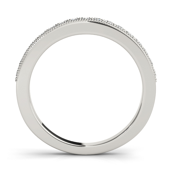 14k White Gold Wedding Band with 17 – .0125PT Round Stones, equal to 1/5 carats total weight. This ring has an optional matching Engagement Ring. Can be customized to fit any stone and in any material. Please contact Ronelli Corp for custom orders and modification information, as pricing may vary.