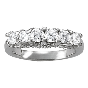 14k White Gold Wedding Band with 6 – .25PT Round & 42 – .005PT Round Stones, equal to 1 3/4 carats total weight. This ring has an optional matching Engagement Ring. Can be customized to fit any stone and in any material. Please contact Ronelli Corp for custom orders and modification information, as pricing may vary.