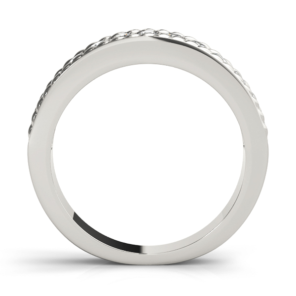 14k White Gold Wedding Band with 13 – .03PT Round Stones, equal to 3/8 carats total weight. This ring has an optional matching Engagement Ring. Can be customized to fit any stone and in any material. Please contact Ronelli Corp for custom orders and modification information, as pricing may vary.