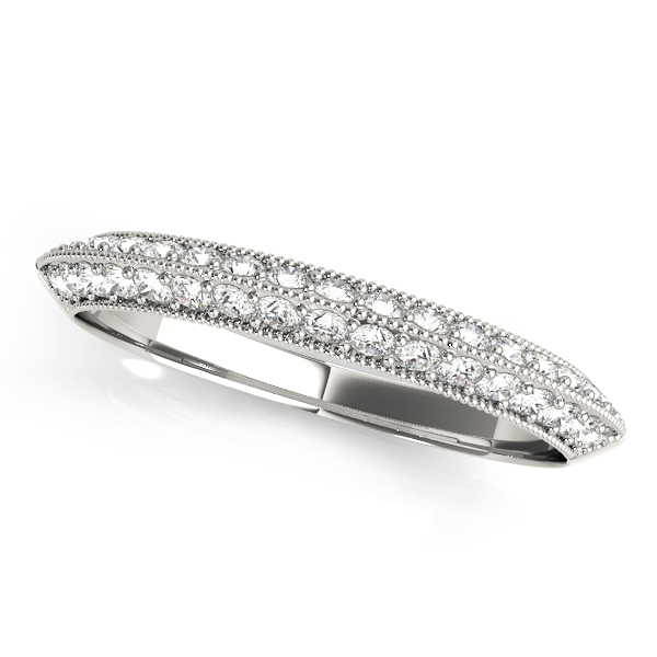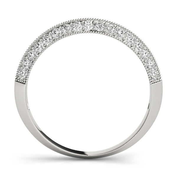 14k White Gold Wedding Band with 34 – .0075PT Round Stones, equal to 1/4 carats total weight. This ring has an optional matching Engagement Ring. Can be customized to fit any stone and in any material. Please contact Ronelli Corp for custom orders and modification information, as pricing may vary.