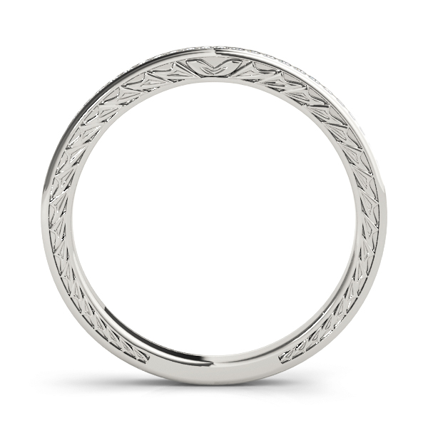 14k White Gold Wedding Band with 16 – .0035PT Round & 8 – .004PT Round & 4 – .005PT Round Stones, equal to 1/10 carats total weight. This ring has an optional matching Engagement Ring. Can be customized to fit any stone and in any material. Please contact Ronelli Corp for custom orders and modification information, as pricing may vary.