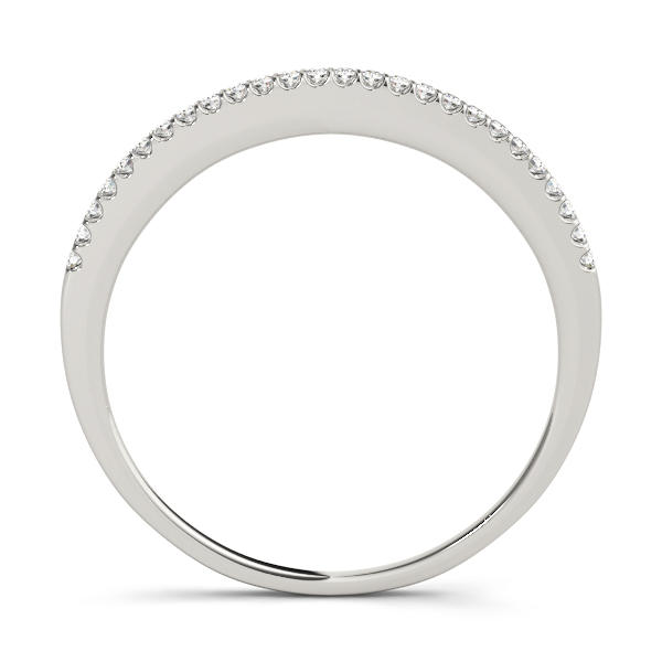 14k White Gold Wedding Band with 26 – .003PT Round Stones, equal to 1/15 carats total weight. This ring has an optional matching Engagement Ring. Can be customized to fit any stone and in any material. Please contact Ronelli Corp for custom orders and modification information, as pricing may vary.