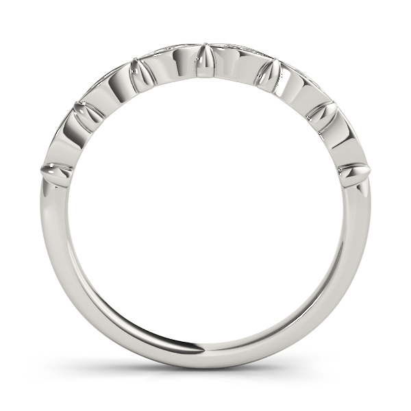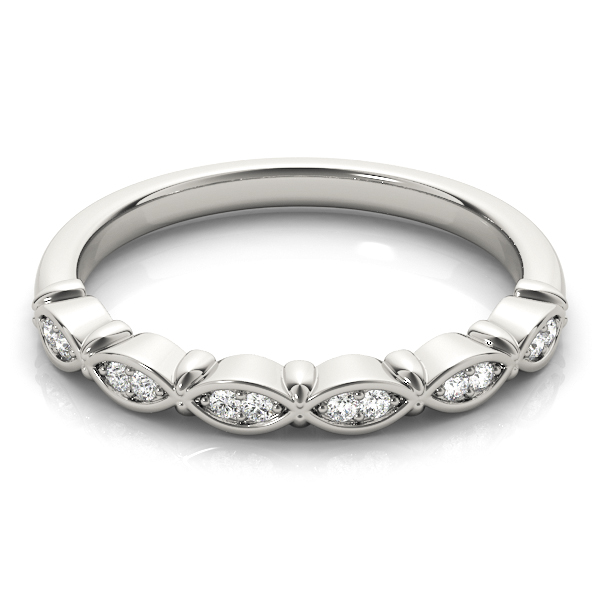 14k White Gold Wedding Band with 12 – .0075PT Round Stones, equal to 1/10 carats total weight. This ring has an optional matching Engagement Ring. Can be customized to fit any stone and in any material. Please contact Ronelli Corp for custom orders and modification information, as pricing may vary.