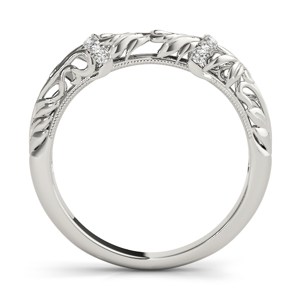 14k White Gold Wedding Band with 10 – .006PT Round Stones, equal to 1/20 carats total weight. This ring has an optional matching Engagement Ring. Can be customized to fit any stone and in any material. Please contact Ronelli Corp for custom orders and modification information, as pricing may vary.