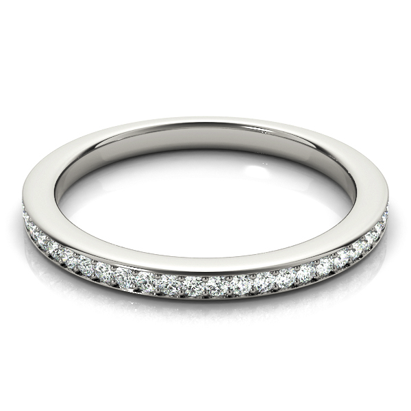 14k White Gold Wedding Band with 35 – .0075PT Round Stones, equal to 1/4 carats total weight. This ring has an optional matching Engagement Ring. Can be customized to fit any stone and in any material. Please contact Ronelli Corp for custom orders and modification information, as pricing may vary.