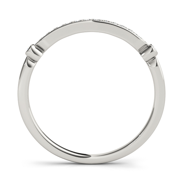 14k White Gold Wedding Band with 12 – .005PT Round & 2 – .0075PT Round Stones, equal to 1/15 carats total weight. This ring has an optional matching Engagement Ring. Can be customized to fit any stone and in any material. Please contact Ronelli Corp for custom orders and modification information, as pricing may vary.