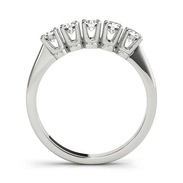 14k White Gold Wedding Band with 5 – .1PT Round Stones, equal to 1/2 carats total weight. Can be customized to fit any stone and in any material. Please contact Ronelli Corp for custom orders and modification information, as pricing may vary.