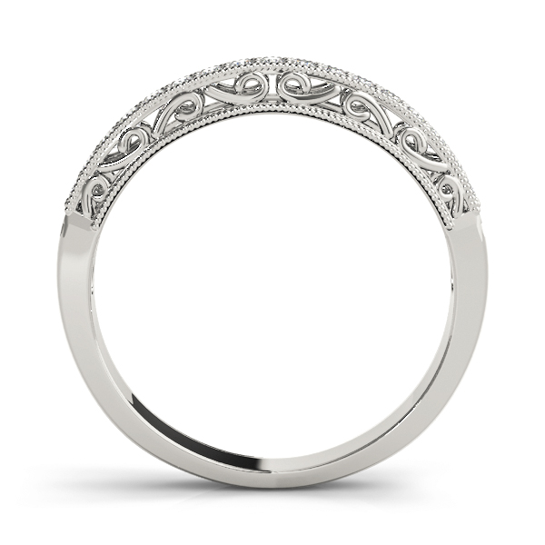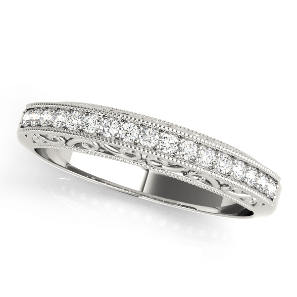 14k White Gold Wedding Band with 17 – .01PT Round Stones, equal to 1/6 carats total weight. This ring has an optional matching Engagement Ring. Can be customized to fit any stone and in any material. Please contact Ronelli Corp for custom orders and modification information, as pricing may vary.
