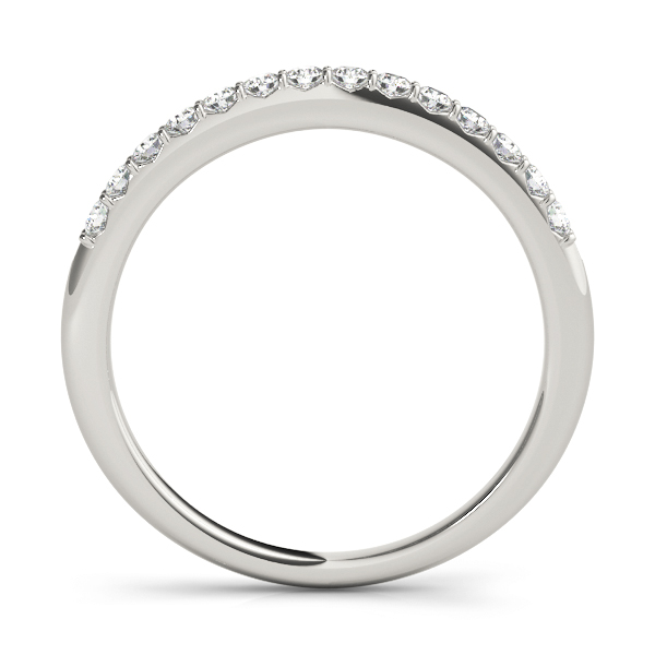 14k White Gold Wedding Band with 14 – .0125PT Round Stones, equal to 1/5 carats total weight. This ring has an optional matching Engagement Ring. Can be customized to fit any stone and in any material. Please contact Ronelli Corp for custom orders and modification information, as pricing may vary.
