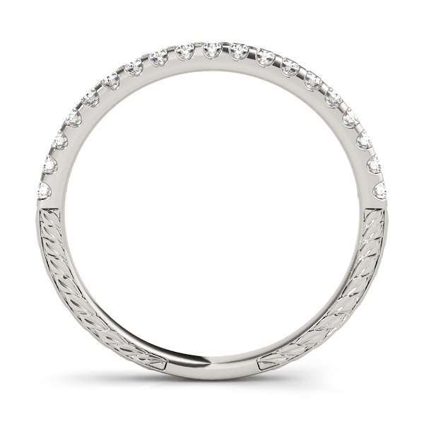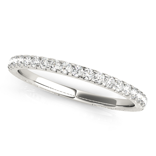 14k White Gold Wedding Band with 19 – .014PT Round Stones, equal to 1/4 carats total weight. This ring has an optional matching Engagement Ring. Can be customized to fit any stone and in any material. Please contact Ronelli Corp for custom orders and modification information, as pricing may vary.