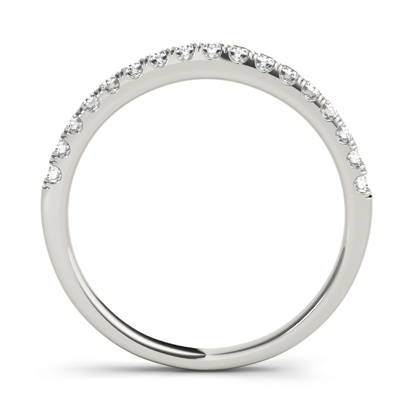 14k White Gold Wedding Band with 17 – .015PT Round Stones, equal to 1/4 carats total weight. This ring has an optional matching Engagement Ring. Can be customized to fit any stone and in any material. Please contact Ronelli Corp for custom orders and modification information, as pricing may vary.
