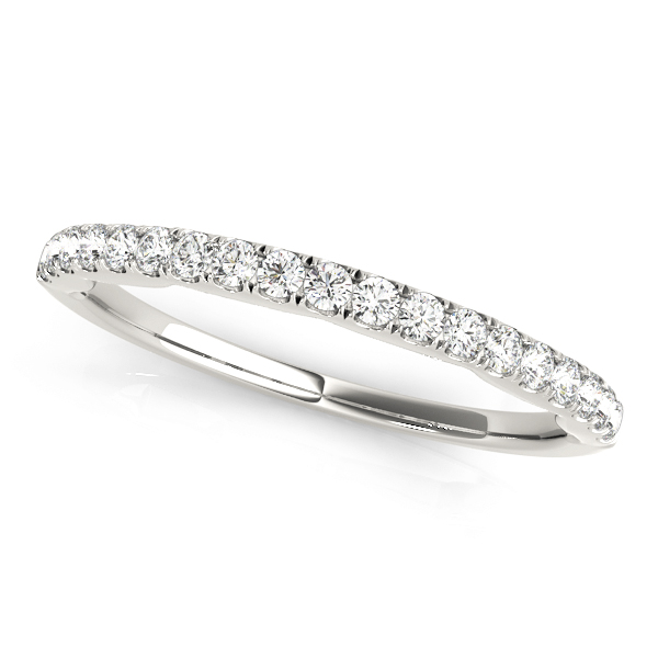 14k White Gold Wedding Band with 19 – .0175PT Round Stones, equal to 1/3 carats total weight. This ring has an optional matching Engagement Ring. Can be customized to fit any stone and in any material. Please contact Ronelli Corp for custom orders and modification information, as pricing may vary.
