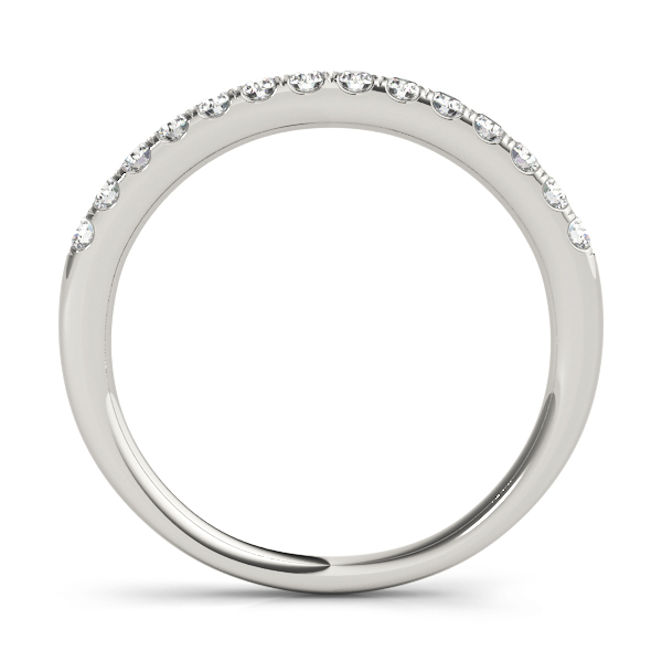 14k White Gold Wedding Band with 14 – .02PT Round Stones, equal to 1/4 carats total weight. This ring has an optional matching Engagement Ring. Can be customized to fit any stone and in any material. Please contact Ronelli Corp for custom orders and modification information, as pricing may vary.