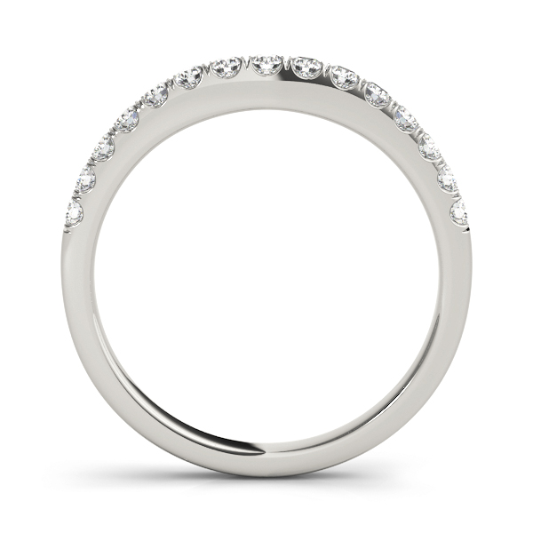 14k White Gold Wedding Band with 15 – .015PT Round Stones, equal to 1/4 carats total weight. This ring has an optional matching Engagement Ring. Can be customized to fit any stone and in any material. Please contact Ronelli Corp for custom orders and modification information, as pricing may vary.