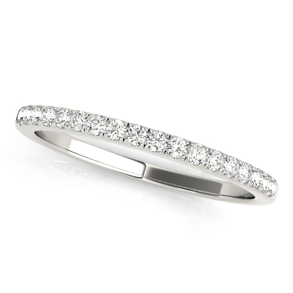 14k White Gold Wedding Band with 18 – .0075PT Round Stones, equal to 1/8 carats total weight. This ring has an optional matching Engagement Ring. Can be customized to fit any stone and in any material. Please contact Ronelli Corp for custom orders and modification information, as pricing may vary.