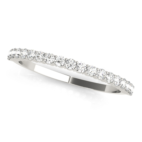 14k White Gold Wedding Band with 19 – .015PT Round Stones, equal to 1/3 carats total weight. This ring has an optional matching Engagement Ring. Can be customized to fit any stone and in any material. Please contact Ronelli Corp for custom orders and modification information, as pricing may vary.