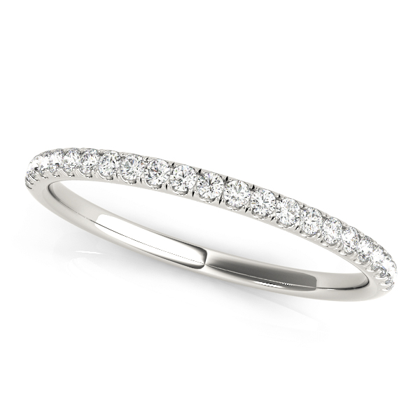 14k White Gold Wedding Band with 23 – .006PT Round Stones, equal to 1/8 carats total weight. This ring has an optional matching Engagement Ring. Can be customized to fit any stone and in any material. Please contact Ronelli Corp for custom orders and modification information, as pricing may vary.