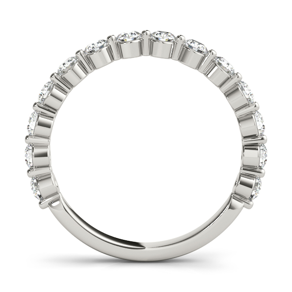 14k White Gold Wedding Band with 14 – .03PT Round Stones, equal to 3/8 carats total weight. This ring has an optional matching Engagement Ring. Can be customized to fit any stone and in any material. Please contact Ronelli Corp for custom orders and modification information, as pricing may vary.