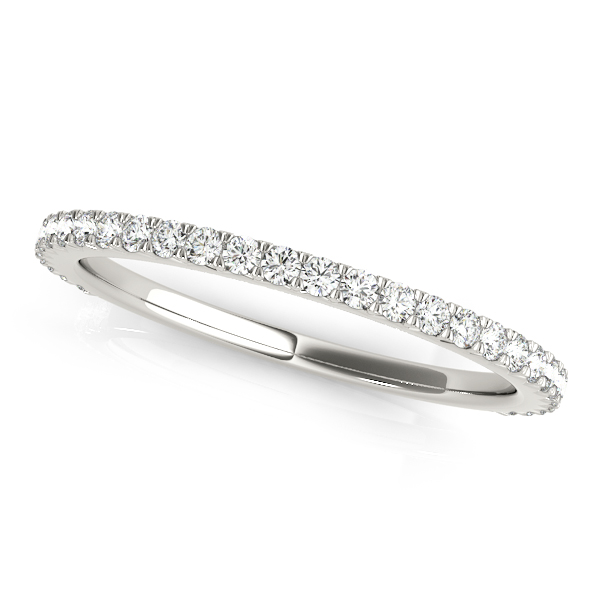 14k White Gold Wedding Band with 30 – .01PT Round Stones, equal to 1/3 carats total weight. This ring has an optional matching Engagement Ring. Can be customized to fit any stone and in any material. Please contact Ronelli Corp for custom orders and modification information, as pricing may vary.