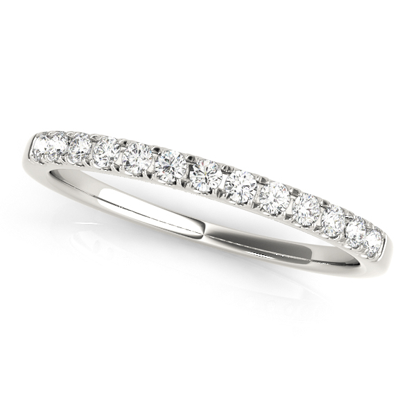 14k White Gold Wedding Band with 13 – .015PT Round Stones, equal to 1/5 carats total weight. This ring has an optional matching Engagement Ring. Can be customized to fit any stone and in any material. Please contact Ronelli Corp for custom orders and modification information, as pricing may vary.