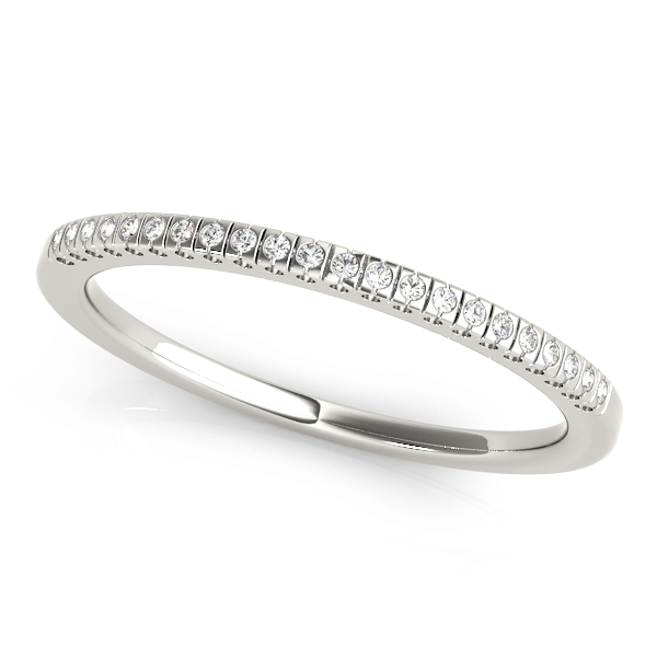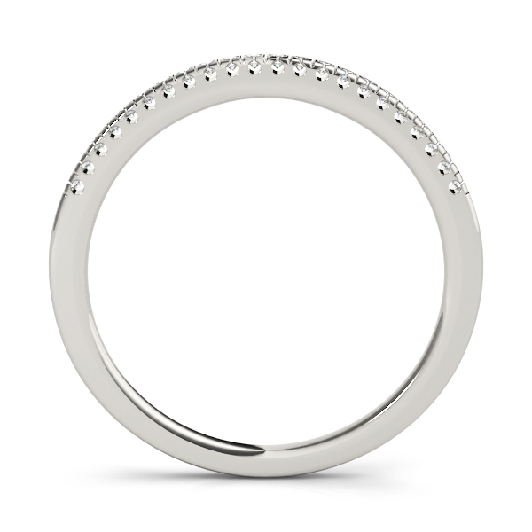 14k White Gold Wedding Band with 22 – .005PT Round Stones, equal to 1/10 carats total weight. Can be customized to fit any stone and in any material. Please contact Ronelli Corp for custom orders and modification information, as pricing may vary.