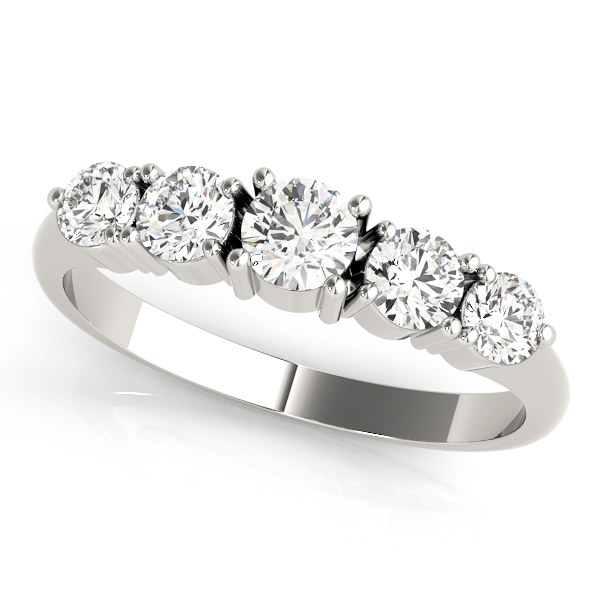 14k White Gold Wedding Band with 1 – .2PT Round & 2 – .15PT Round & 2 – .1PT Round Stones, equal to 3/4 carats total weight. Can be customized to fit any stone and in any material. Please contact Ronelli Corp for custom orders and modification information, as pricing may vary.