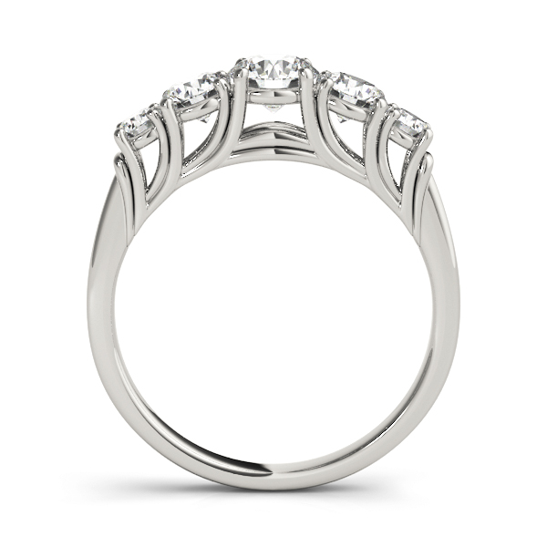 14k White Gold Wedding Band with 1 – .5PT Round & 2 – .15PT Round & 2 – .06PT Round Stones, equal to 7/8 carats total weight. Can be customized to fit any stone and in any material. Please contact Ronelli Corp for custom orders and modification information, as pricing may vary.