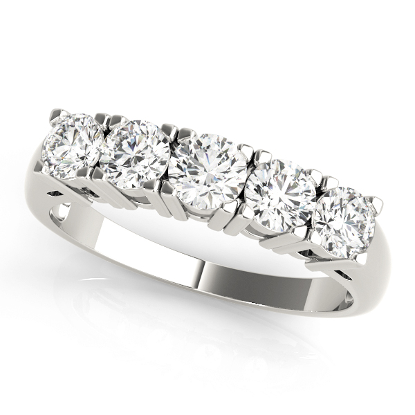 14k White Gold Wedding Band with 1 – .22PT Round & 2 – .2PT Round & 2 – .17PT Round Stones, equal to 1 carats total weight. Can be customized to fit any stone and in any material. Please contact Ronelli Corp for custom orders and modification information, as pricing may vary.