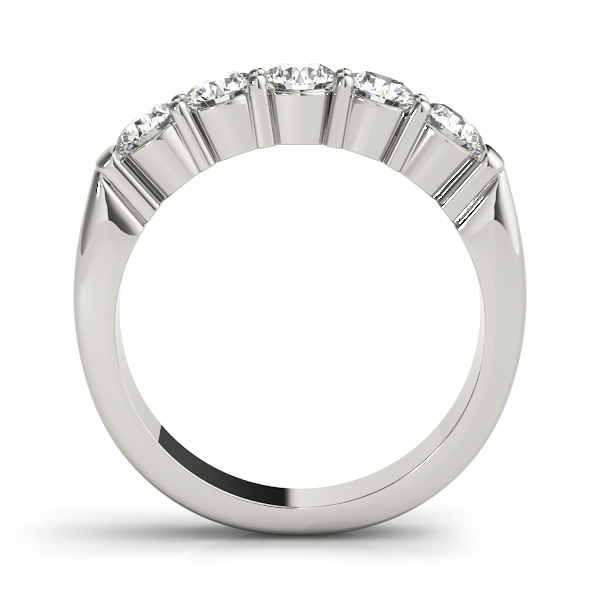14k White Gold Wedding Band with 5 – .2PT Round Stones, equal to 1 carats total weight. Can be customized to fit any stone and in any material. Please contact Ronelli Corp for custom orders and modification information, as pricing may vary.