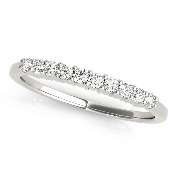 14k White Gold Wedding Band with 10 – .02PT Round Stones, equal to 1/5 carats total weight. This ring has an optional matching Engagement Ring. Can be customized to fit any stone and in any material. Please contact Ronelli Corp for custom orders and modification information, as pricing may vary.