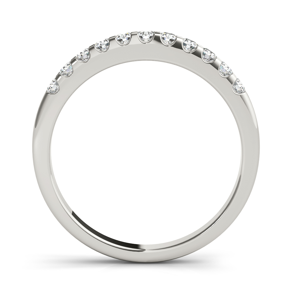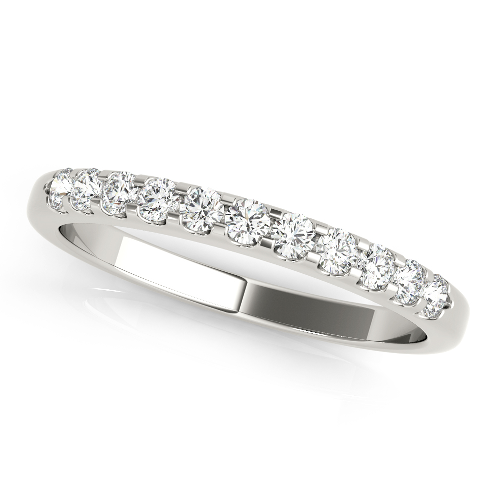 14k White Gold Wedding Band with 11 – .0275PT Round Stones, equal to 1/3 carats total weight. This ring has an optional matching Engagement Ring. Can be customized to fit any stone and in any material. Please contact Ronelli Corp for custom orders and modification information, as pricing may vary.