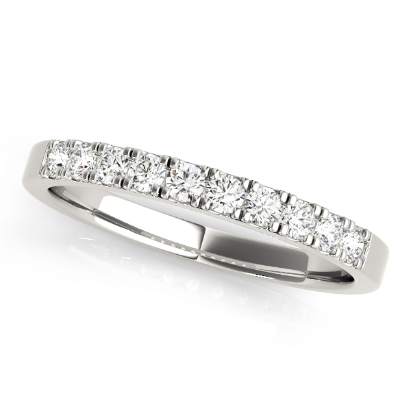14k White Gold Wedding Band with 10 – .03PT Round Stones, equal to 1/3 carats total weight. This ring has an optional matching Engagement Ring. Can be customized to fit any stone and in any material. Please contact Ronelli Corp for custom orders and modification information, as pricing may vary.
