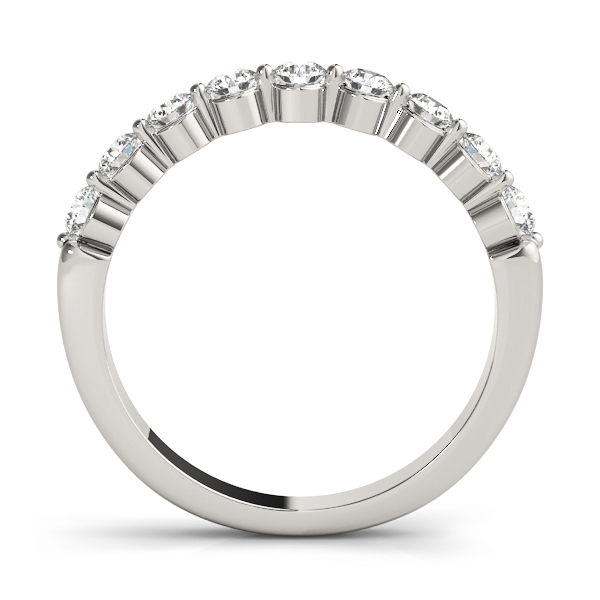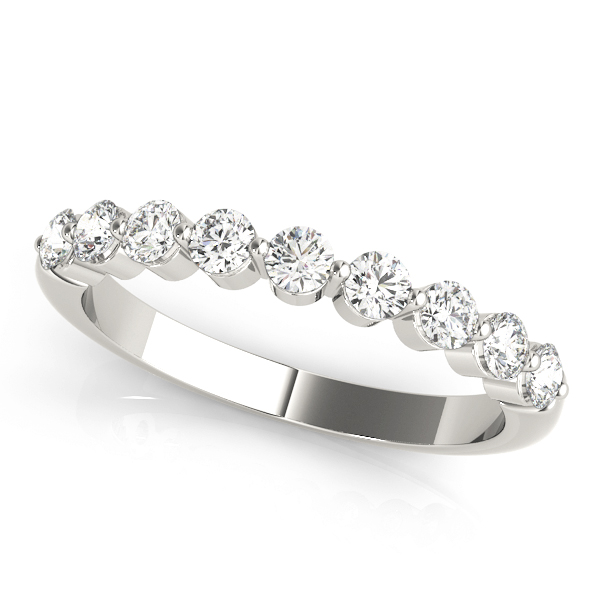 14k White Gold Wedding Band with 9 – .05PT Round Stones, equal to 1/2 carats total weight. Can be customized to fit any stone and in any material. Please contact Ronelli Corp for custom orders and modification information, as pricing may vary.