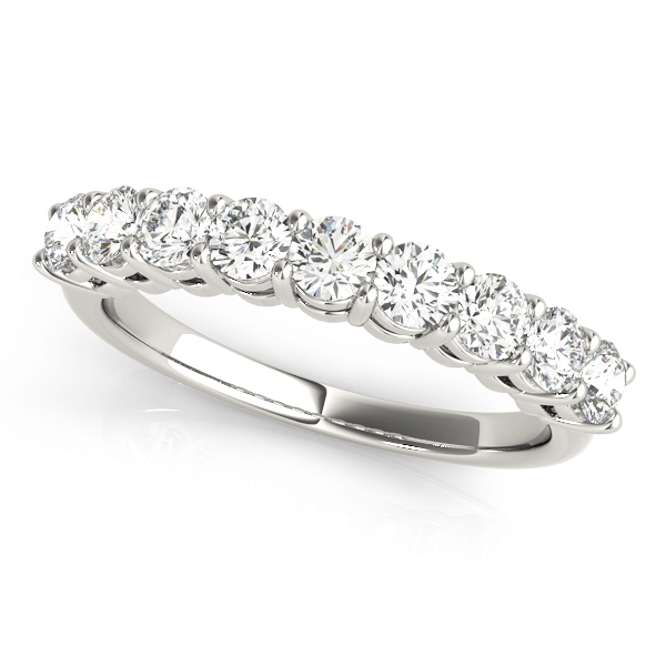 14k White Gold Wedding Band with 9 – .11PT Round Stones, equal to 1 carats total weight. Can be customized to fit any stone and in any material. Please contact Ronelli Corp for custom orders and modification information, as pricing may vary.