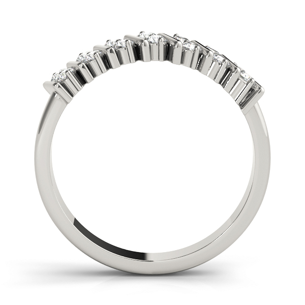 14k White Gold Wedding Band with 14 – .025PT Round Stones, equal to 1/3 carats total weight. Can be customized to fit any stone and in any material. Please contact Ronelli Corp for custom orders and modification information, as pricing may vary.
