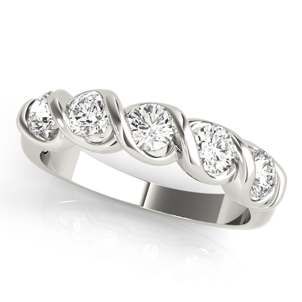 14k White Gold Wedding Band with 5 – .2PT Round Stones, equal to 1 carats total weight. Can be customized to fit any stone and in any material. Please contact Ronelli Corp for custom orders and modification information, as pricing may vary.