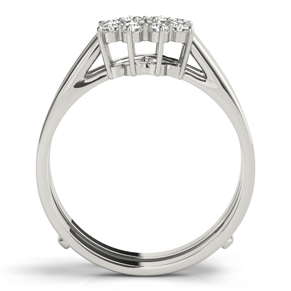 14k White Gold Wedding Band with 8 – .02PT Round Stones, equal to 1/6 carats total weight. Can be customized to fit any stone and in any material. Please contact Ronelli Corp for custom orders and modification information, as pricing may vary.