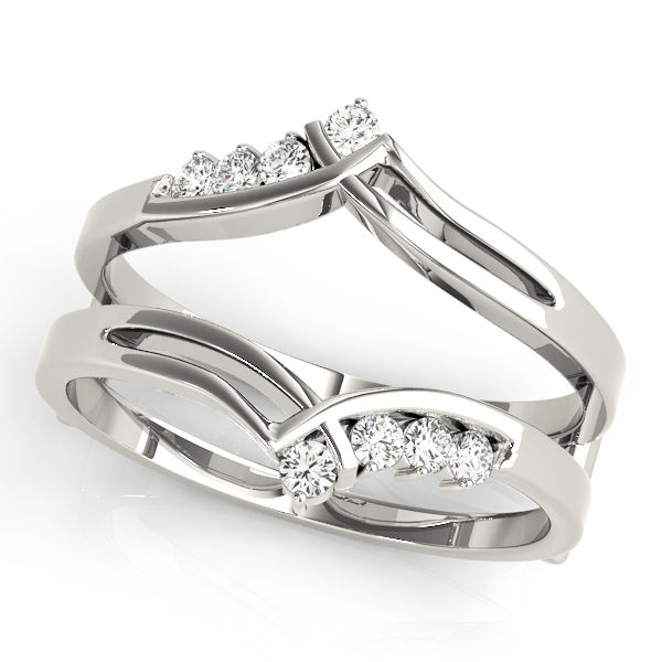 14k White Gold Wedding Band with 6 – .02PT Round & 2 – .025PT Round Stones, equal to 1/6 carats total weight. Can be customized to fit any stone and in any material. Please contact Ronelli Corp for custom orders and modification information, as pricing may vary.