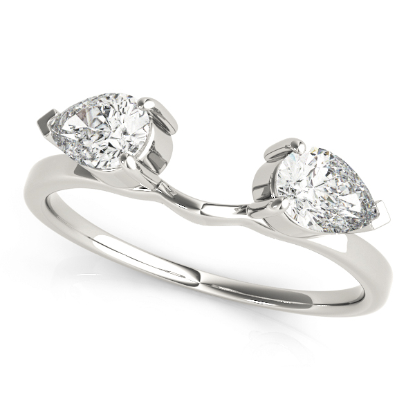 14k White Gold Wedding Band with 2 – 6×4 Pear Stones, equal to 5/8 carats total weight. Can be customized to fit any stone and in any material. Please contact Ronelli Corp for custom orders and modification information, as pricing may vary.
