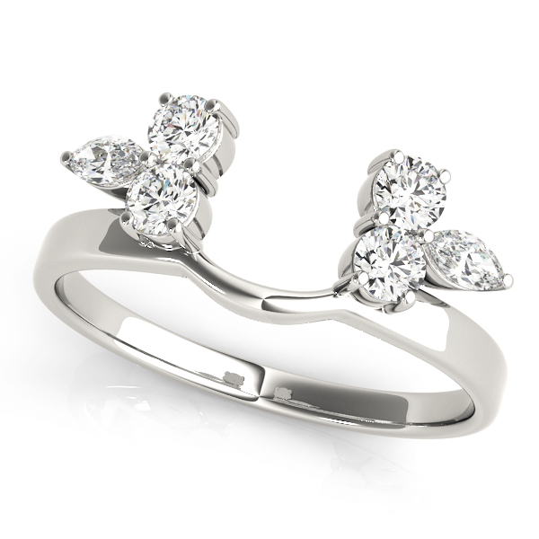 14k White Gold Wedding Band with 4 – .08PT Round & 2 – 4×2 Marquise Stones, equal to 1/2 carats total weight. Can be customized to fit any stone and in any material. Please contact Ronelli Corp for custom orders and modification information, as pricing may vary.