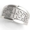 14k White Gold Wedding Band with 2 – .03PT Round & 2 – .025PT Round & 2 – .04PT Round Stones, equal to 1/5 carats total weight. Can be customized to fit any stone and in any material. Please contact Ronelli Corp for custom orders and modification information, as pricing may vary.