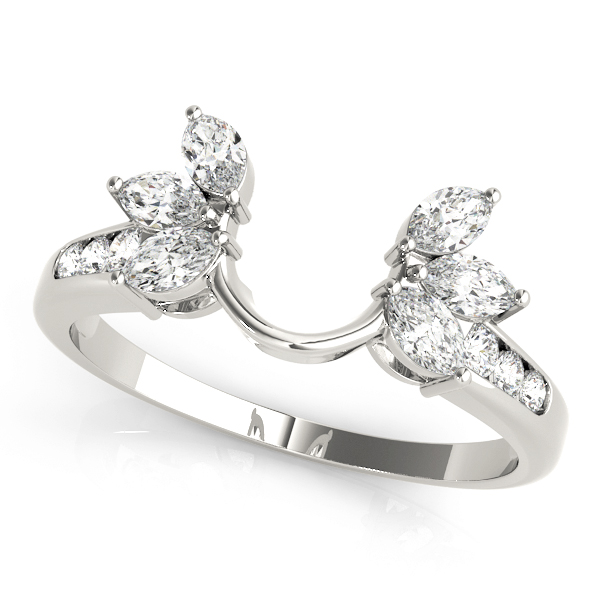 14k White Gold Wedding Band with 6 – .02PT Round & 6 – 3.5×2 Marquise Stones, equal to 5/8 carats total weight. Can be customized to fit any stone and in any material. Please contact Ronelli Corp for custom orders and modification information, as pricing may vary.
